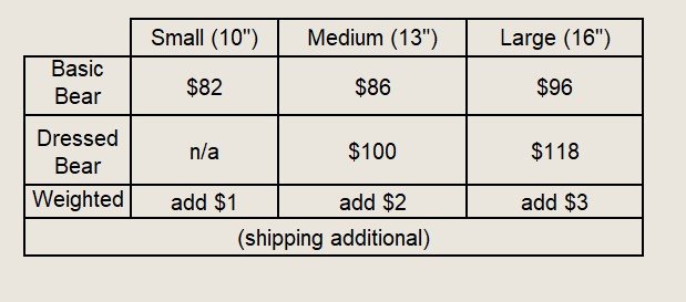 Memory bears are highly customizable, so please note that these prices are estimates based on average process times and your total may be more or less.